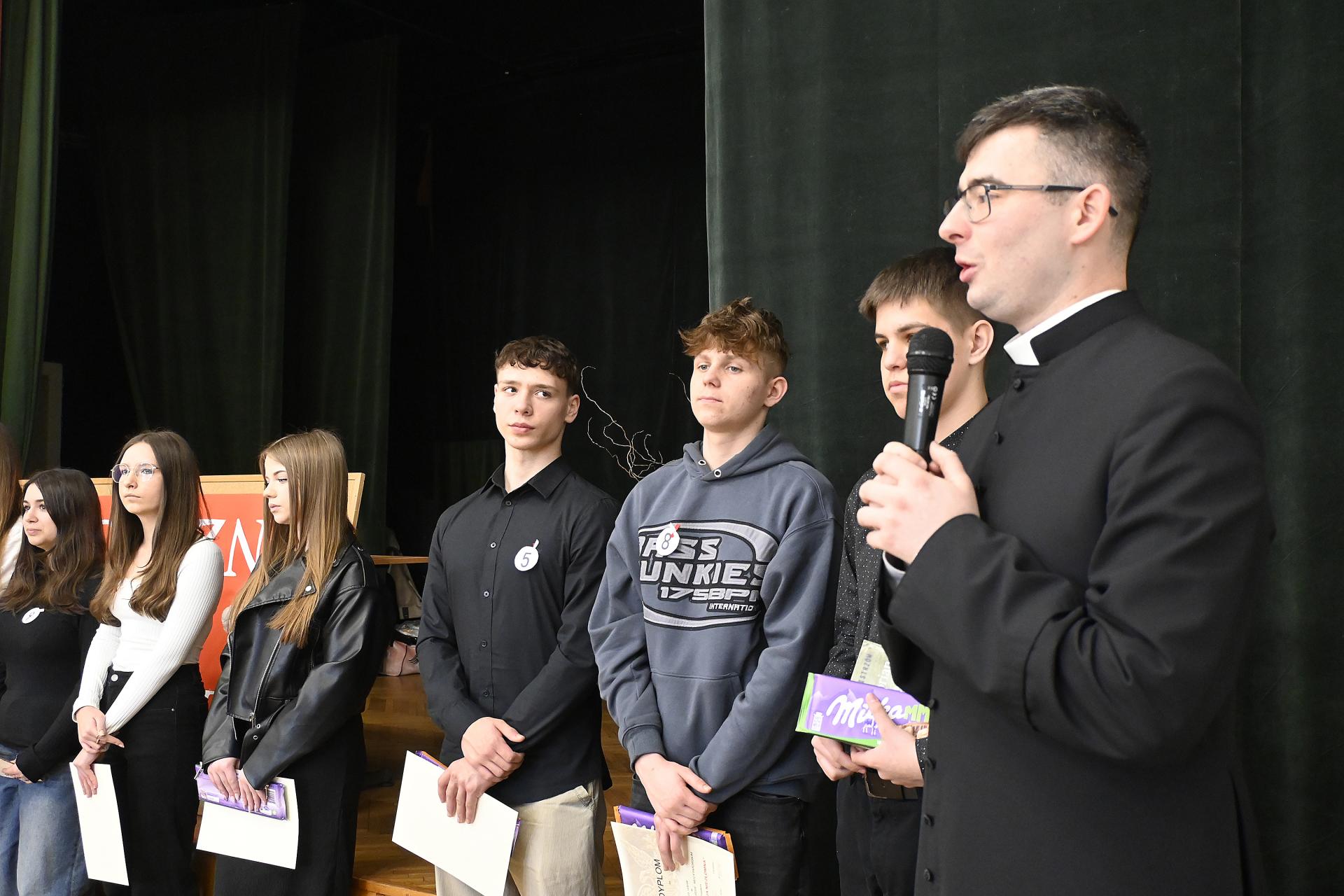 Nagrodzono też laureatów trzech konkursów: wiedzy o życiu i twórczości Stefana Żeromskiego, literackiego i plastycznego przebiegających pod hasłem „Sen o Polsce”. Nagrodzone uczennice, w ramach konkursu literackiego: Ania Michałkiewicz, Aurelia Hapłyk i Wiktoria Kłębucka, zaprezentowały swoje utwory. Laureatki konkursu plastycznego: Aleksandra Zapalska, Aleksandra Mroczkowska i Oliwia Ziembowska krótko przedstawiły myśli przewodnie swoich prac, którym przypisać można by tytuły: Tęsknota – Wolność - Nadzieja. Spotkanie prowadzili: Hania Tera i Jakub Cieślak.